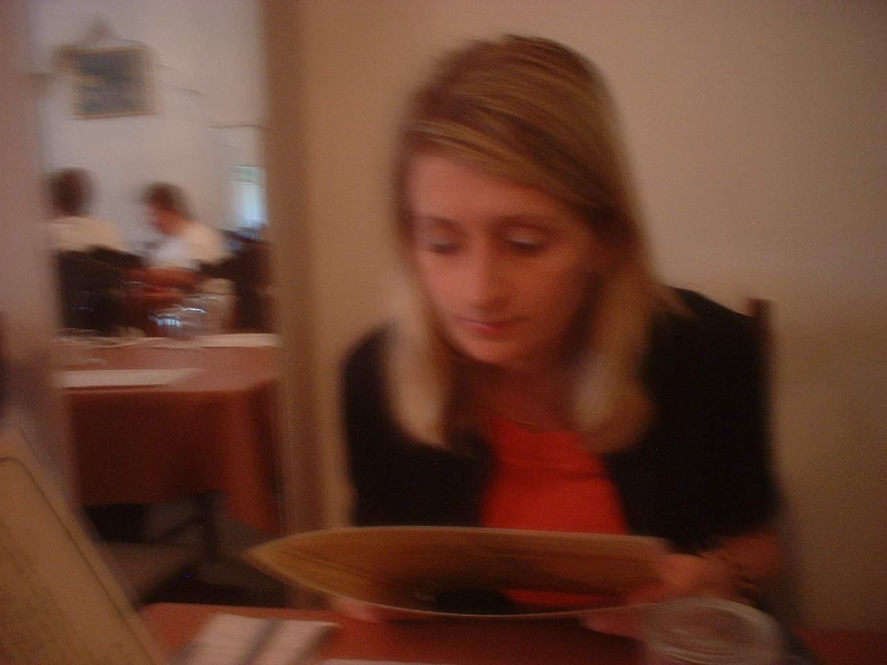Oksana reads the menu