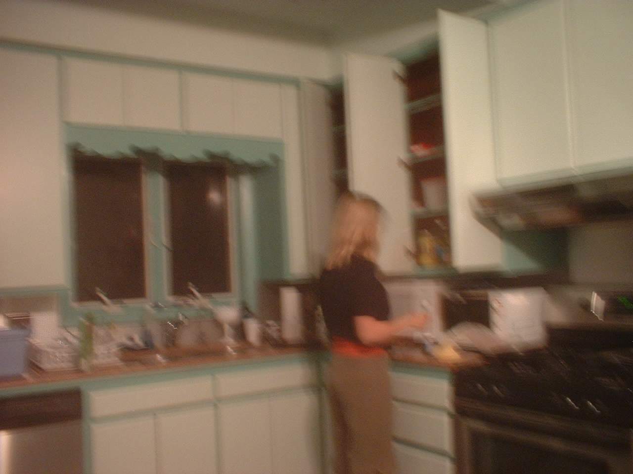 in her own big kitchen
