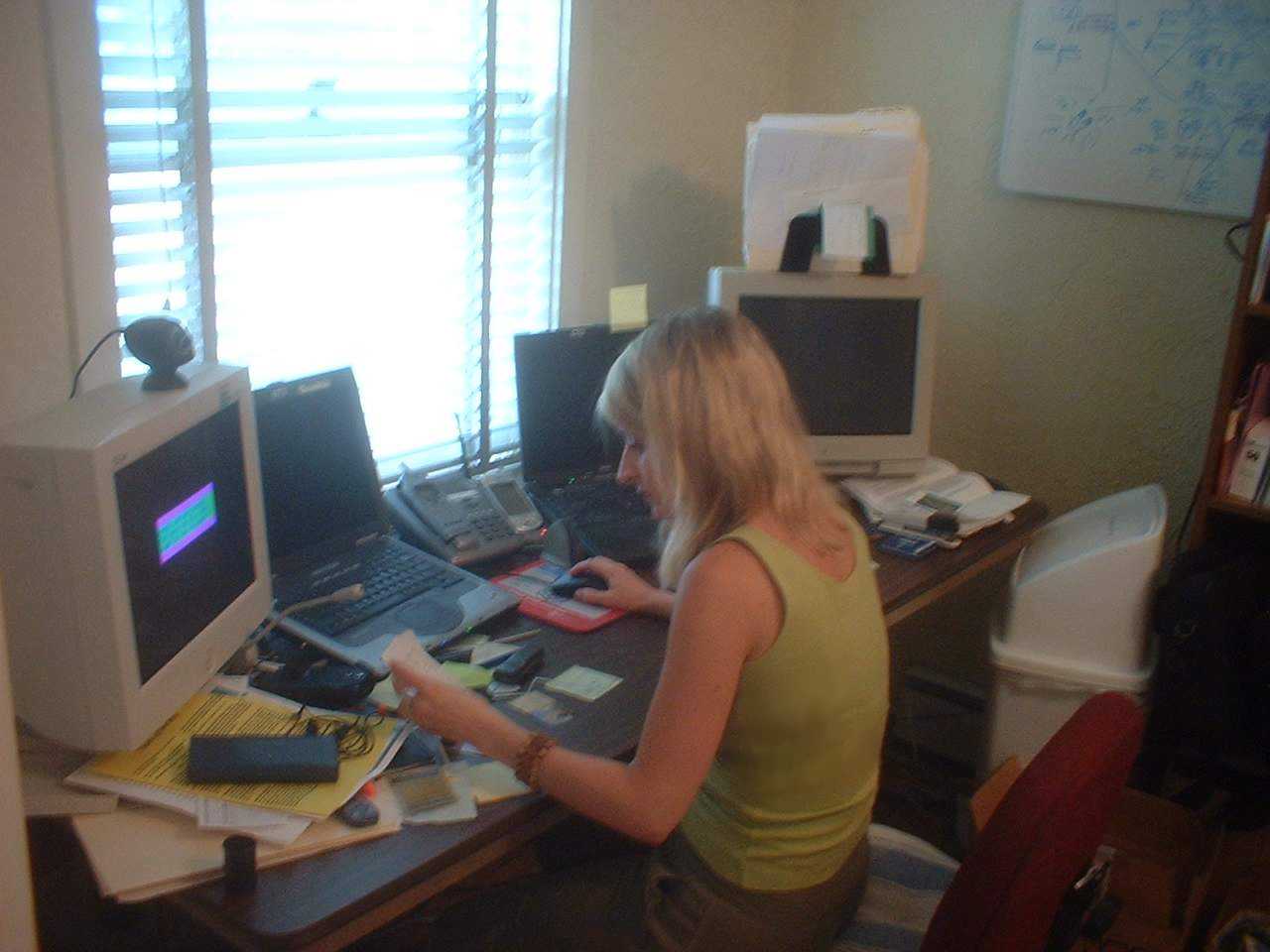 Oksana checks email