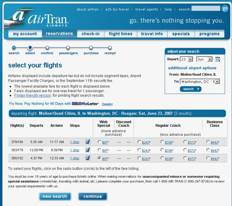 Often you can fine Web Specials for under $100 from MLI to DCA