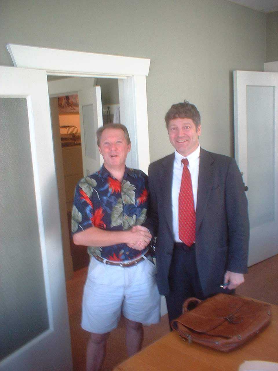 Warren and Rick shake hands on the deal |