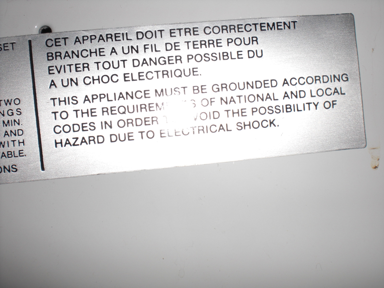 THIS APPLIANCE MUST BE GROUNDED ACCORDING TO THE REQUIREMENTS OF NATIONAL AND