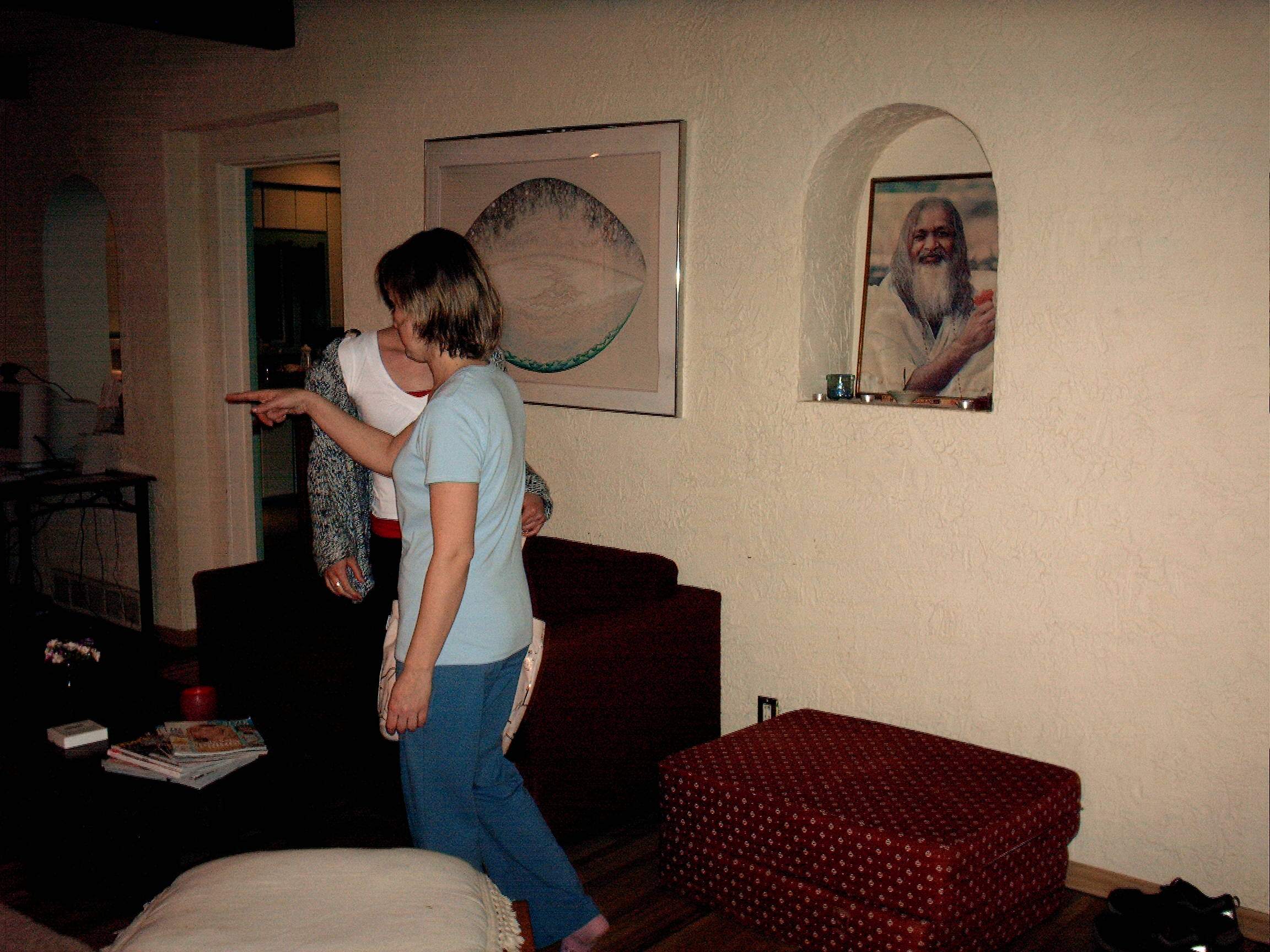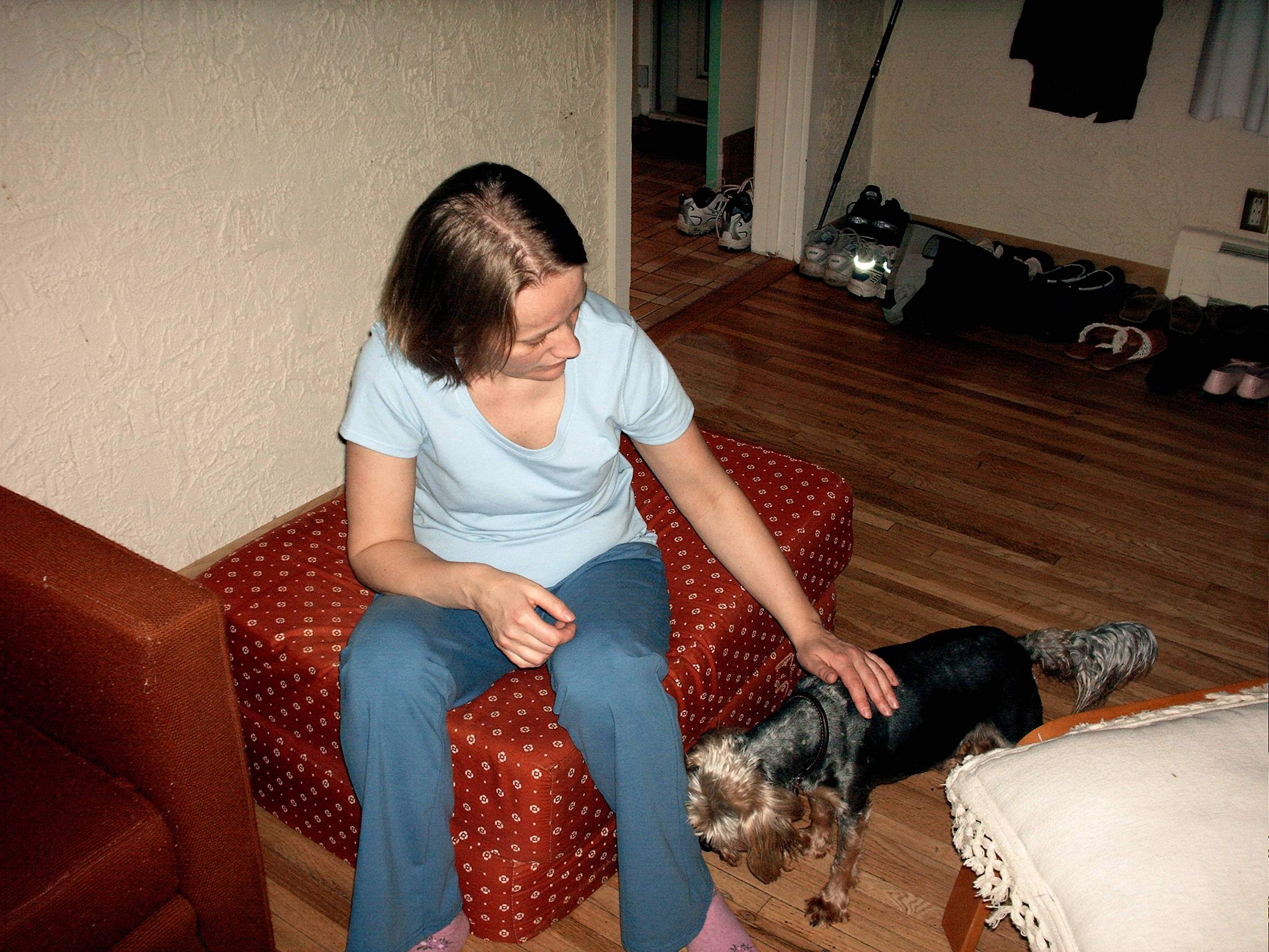 Marie pets Margareta's dog