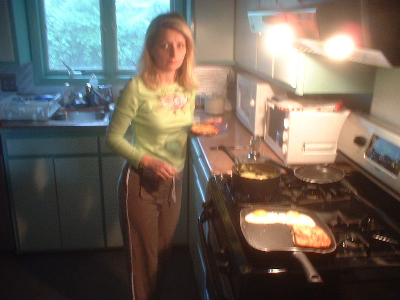 Cooking breakfast eggs and toast