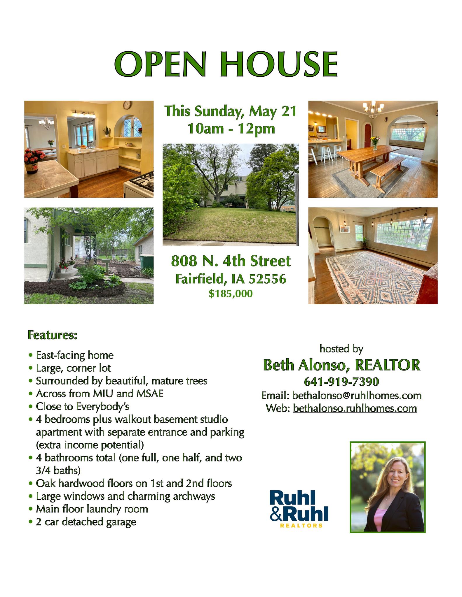 Real Estate renting agents  include Beth Alonso of Ruhl Real Estate 641-919-7390
