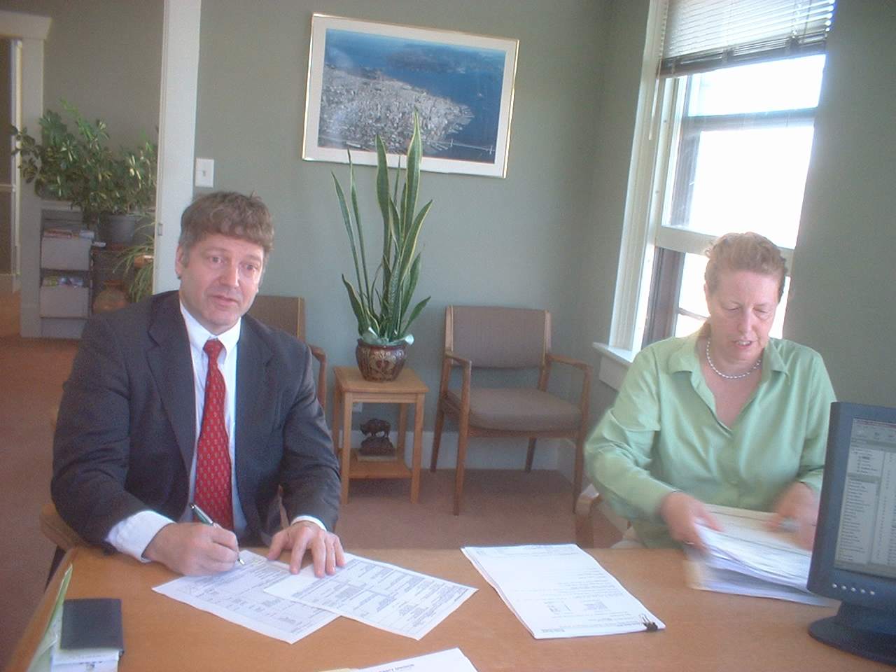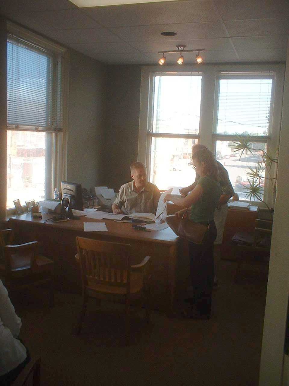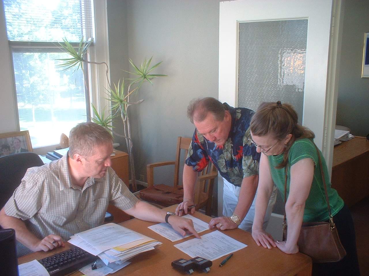![]() Brandon shows Warren and Gail where to sign. |